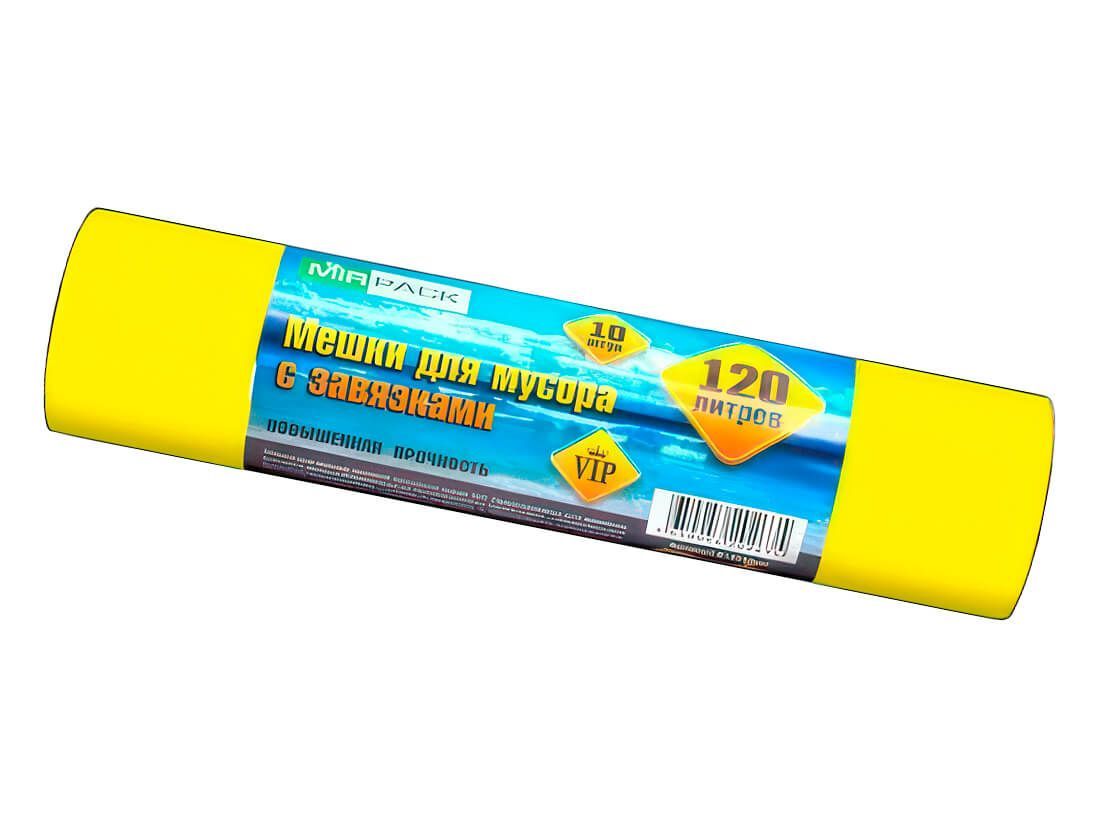 Мешки для мусора 120 л, с завязками, желтые, в рулоне 10 шт., ПНД, 15 мкм, 800х750 мм, VIP, Z12010yel