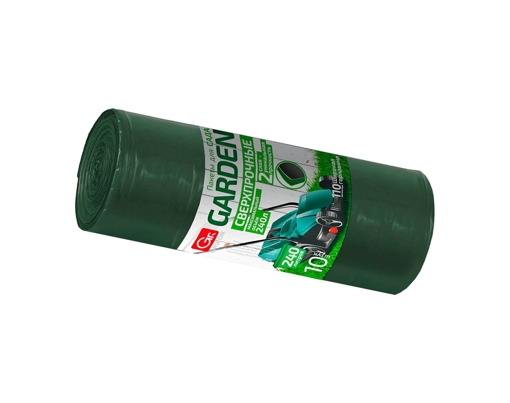 Мешки GRIFON PROFF GARDEN - идеальное решение для эффективной утилизации садовых и сельскохозяйственных отходов! В этом рулоне вас ждут 10 двухслойных зеленых мешков объемом 240 литров каждый, изготовленных из высококачественного полиэтилена высокой плотности (ПВД) толщиной 35 микрон.