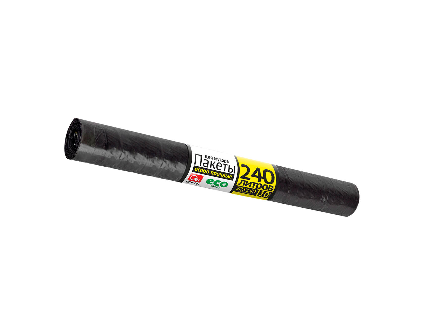Мешки для мусора 240 л, черные, в рулоне 10 шт., ПВД 40 мкм, 1400х900 мм, GRIFON, 101-037