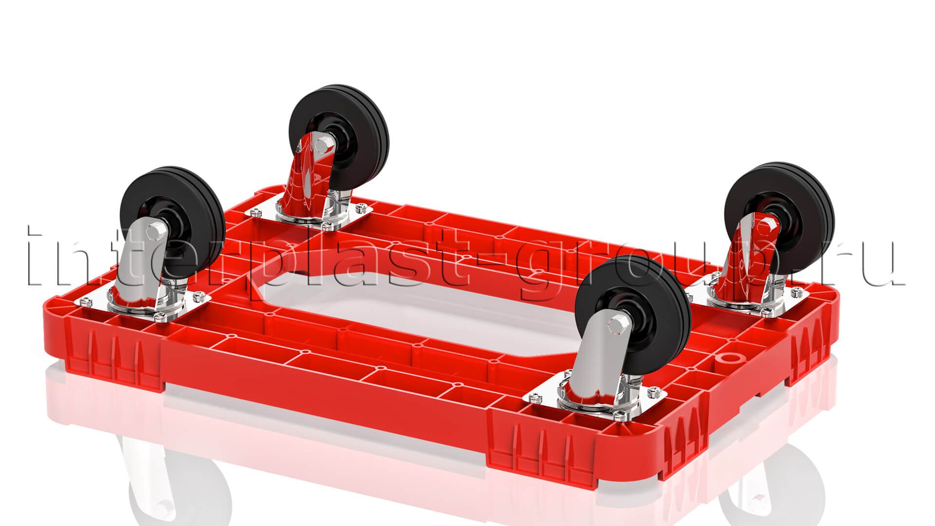 Тележка пластиковая с отверстием без тормозов красная в Клину