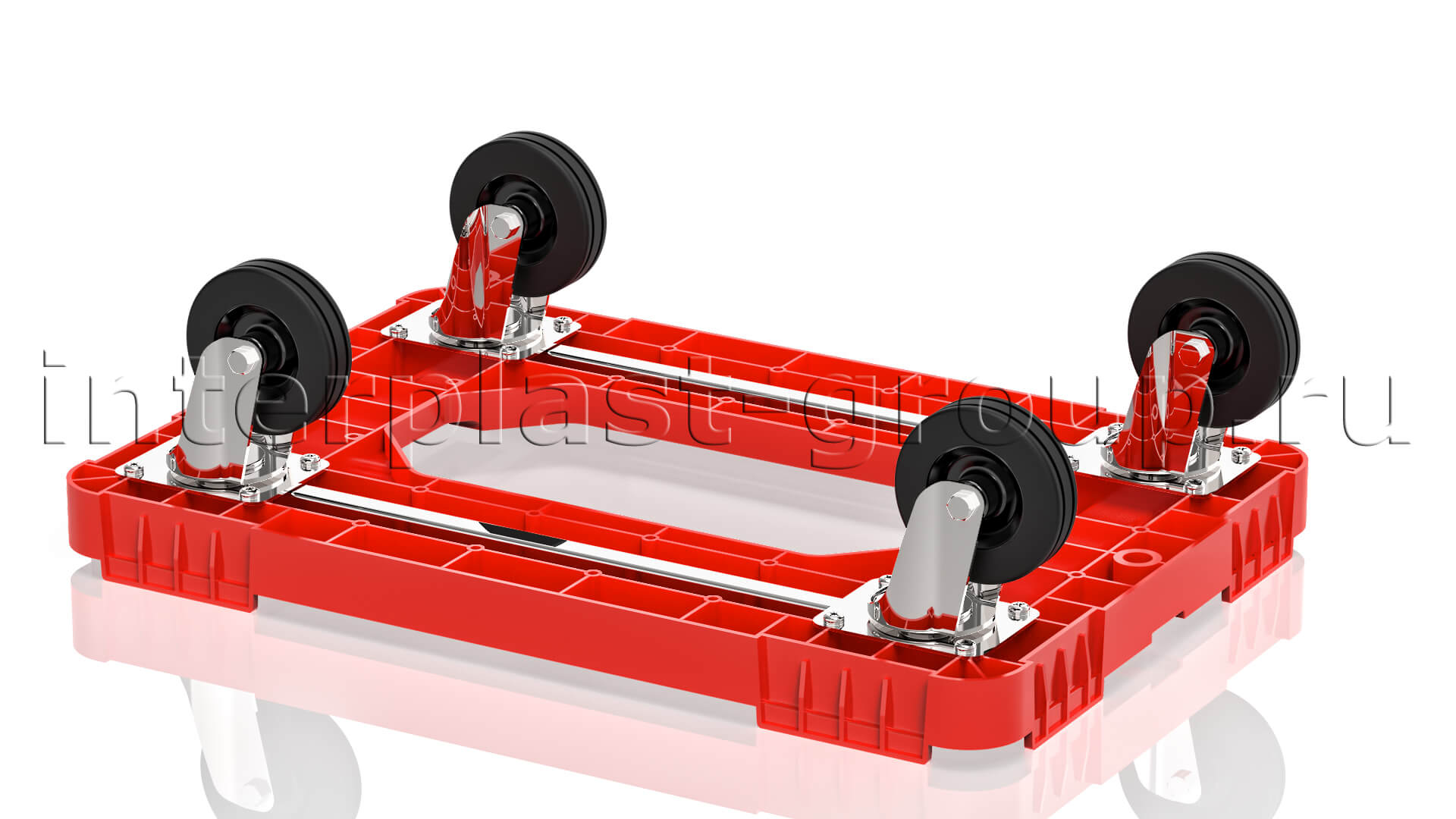 Тележка пластиковая с отверстием без тормозов усиленная красная в Клину