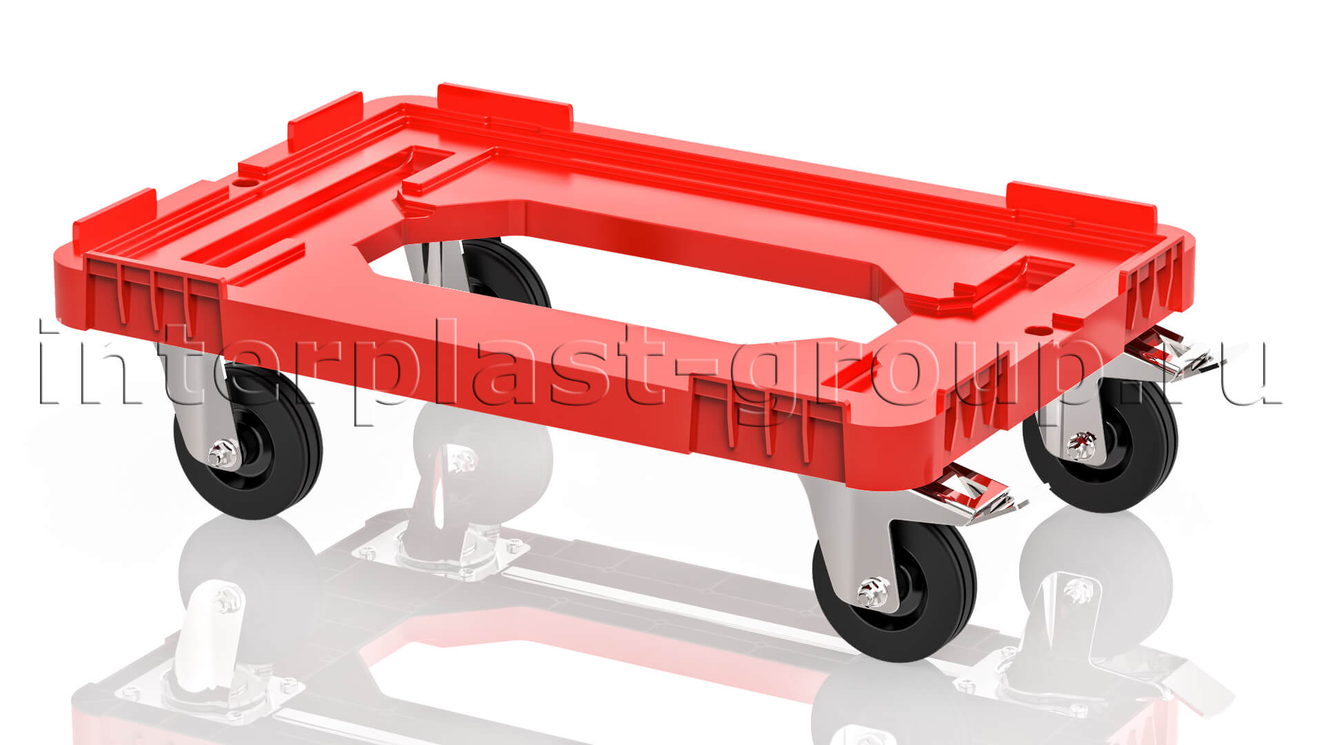 Тележка пластиковая с отверстием 2 колеса с тормозом усиленная красная в Клину